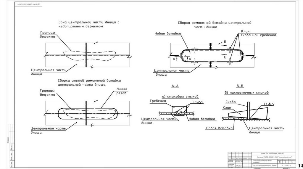 предложить мероприятия по ремонту центральной части днища, по ремонту