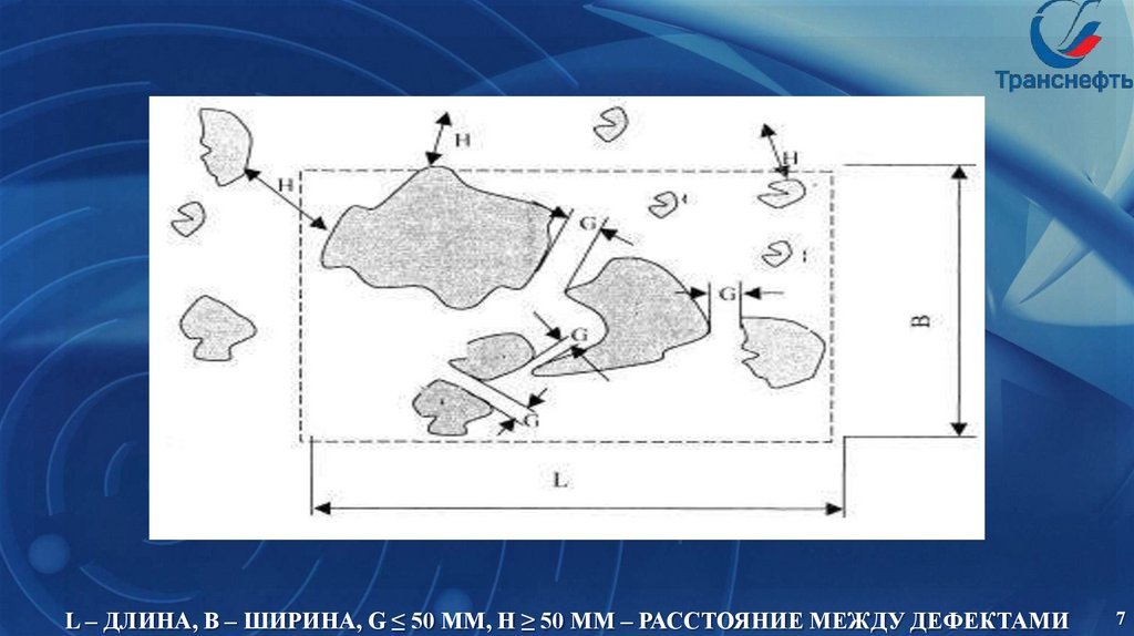 L – ДЛИНА, B – ШИРИНА, G ≤ 50 ММ, Н ≥ 50 ММ – РАССТОЯНИЕ МЕЖДУ ДЕФЕКТАМИ7