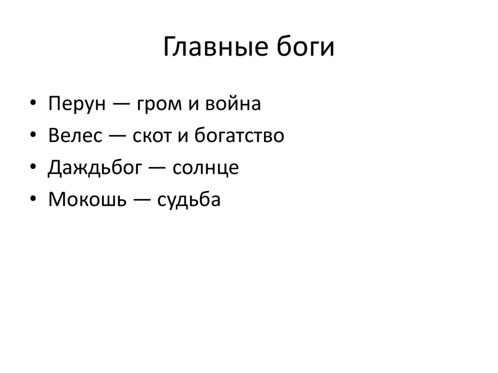 Главные боги• Перун — гром и война