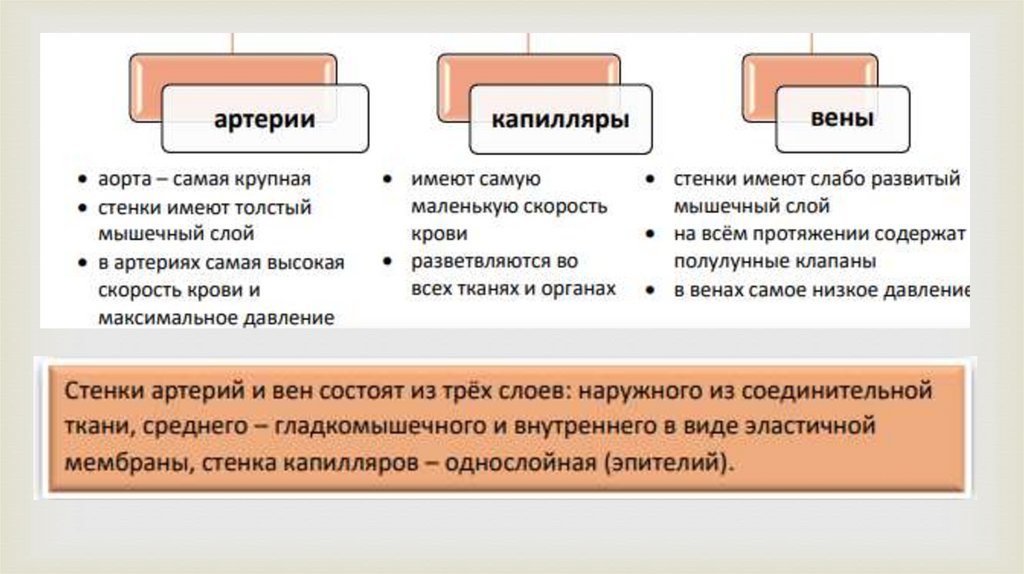 в капиллярах, поэтому кровь имеет промежуточную скорость 0,25 м/с.