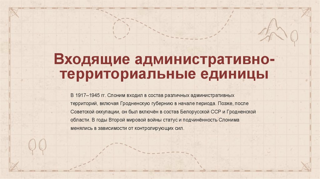 Входящие административнотерриториальные единицыВ 1917–1945 гг. Слоним входил в состав различных административных