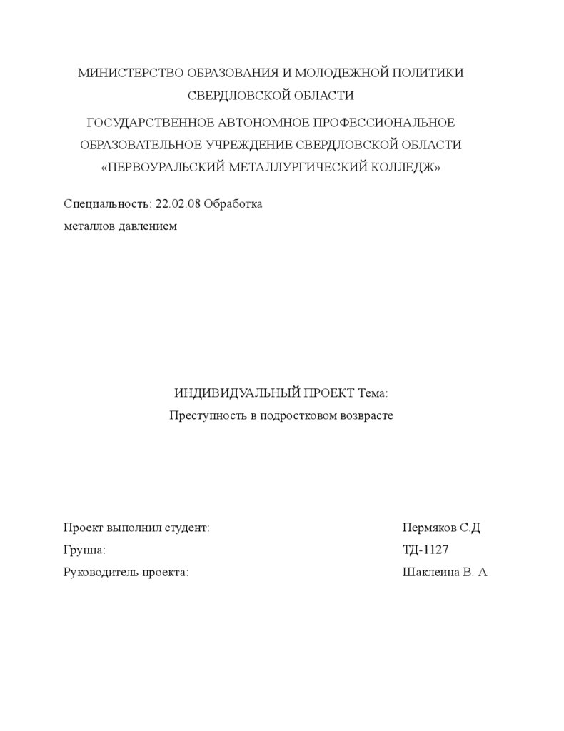 Преступность среди несовершеннолетних остается одной из наиболее острыхсоциальных проблем современного общества. Подростковый возраст - это