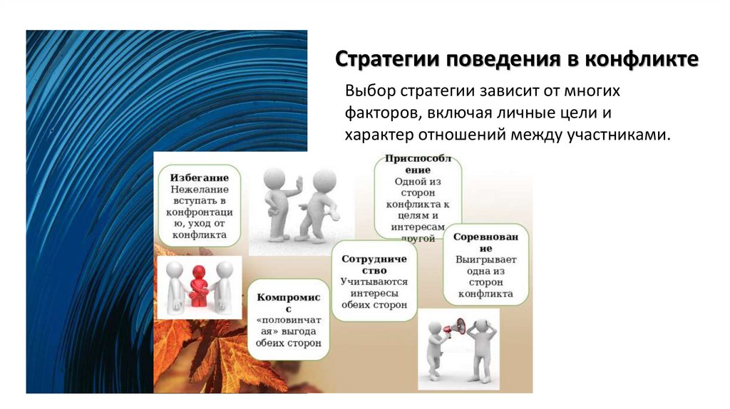 Стратегии поведения в конфликтеВыбор стратегии зависит от многих