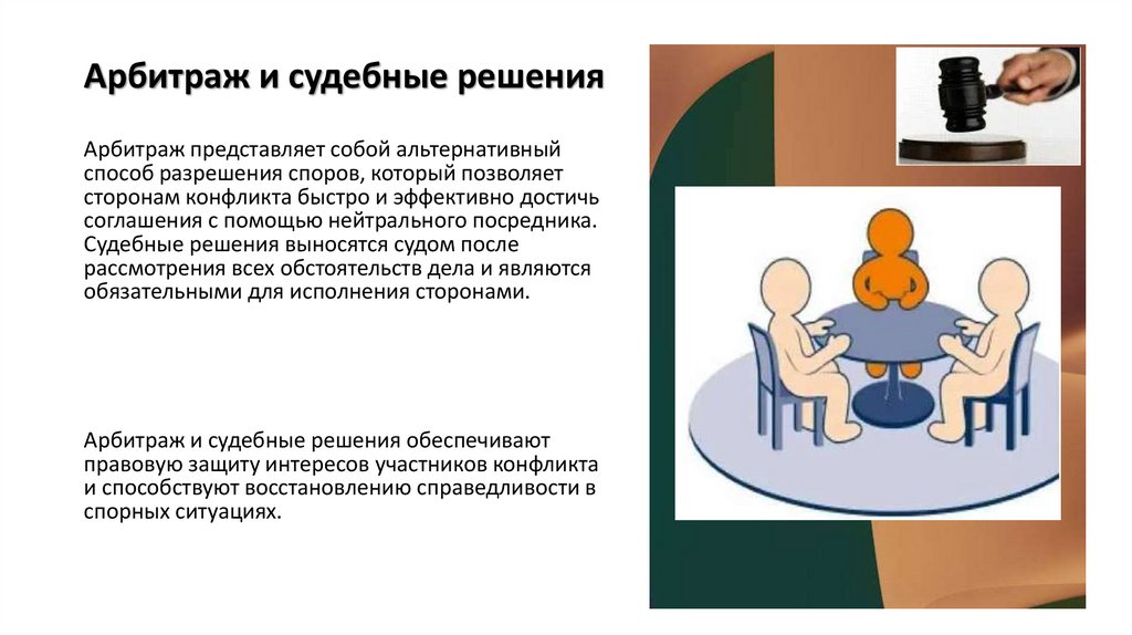 Арбитраж и судебные решенияАрбитраж представляет собой альтернативный