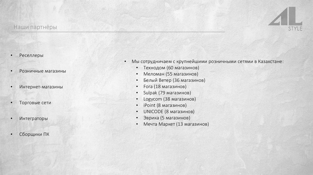 Почему Al-Style?Стабильно развивающаяся компания, успешно работающая на рынке 15 лет