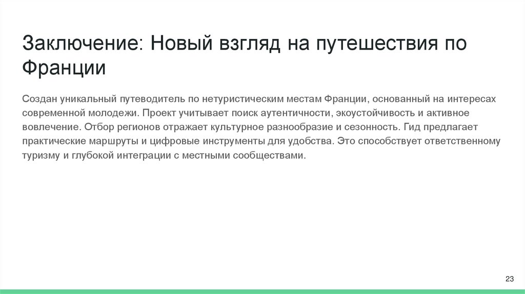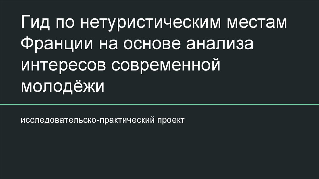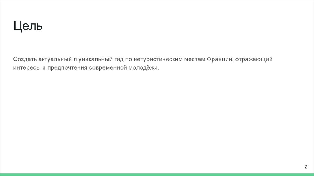 ЦельСоздать актуальный и уникальный гид по нетуристическим местам Франции, отражающий