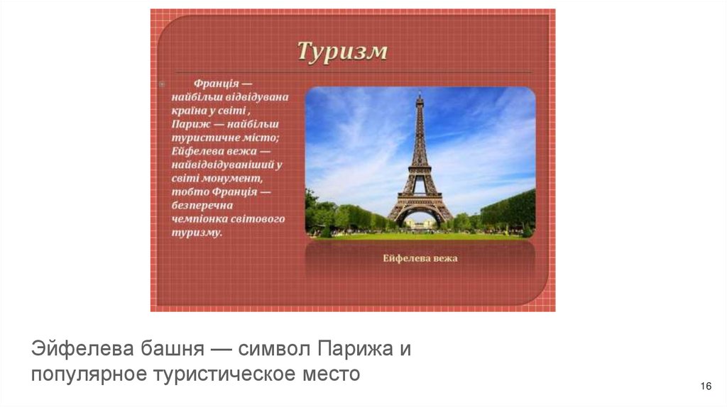 Эйфелева башня — символ Парижа ипопулярное туристическое место