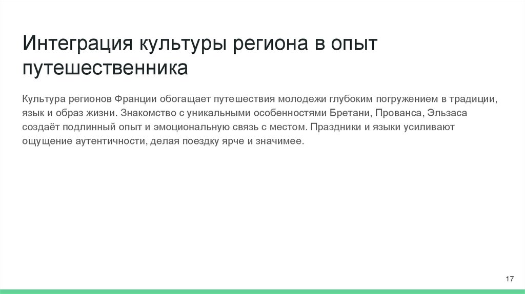 Интеграция культуры региона в опытпутешественника