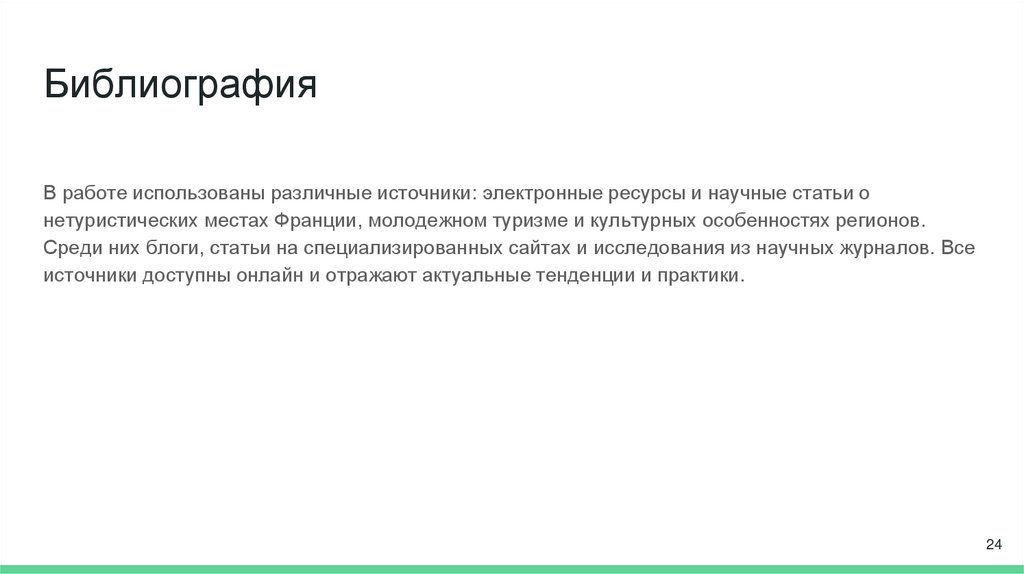 БиблиографияВ работе использованы различные источники: электронные ресурсы и научные статьи о
