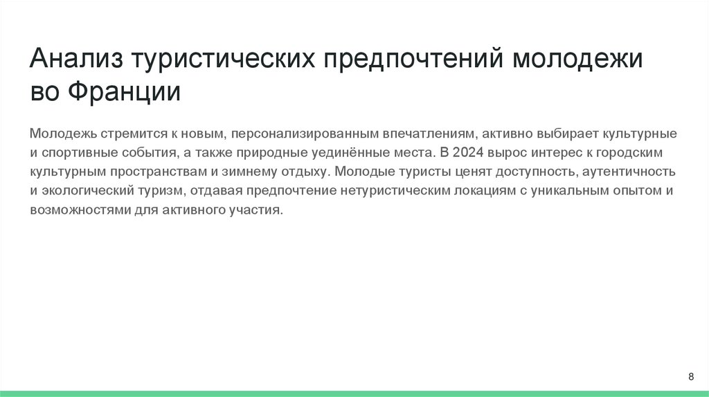 Анализ туристических предпочтений молодеживо Франции