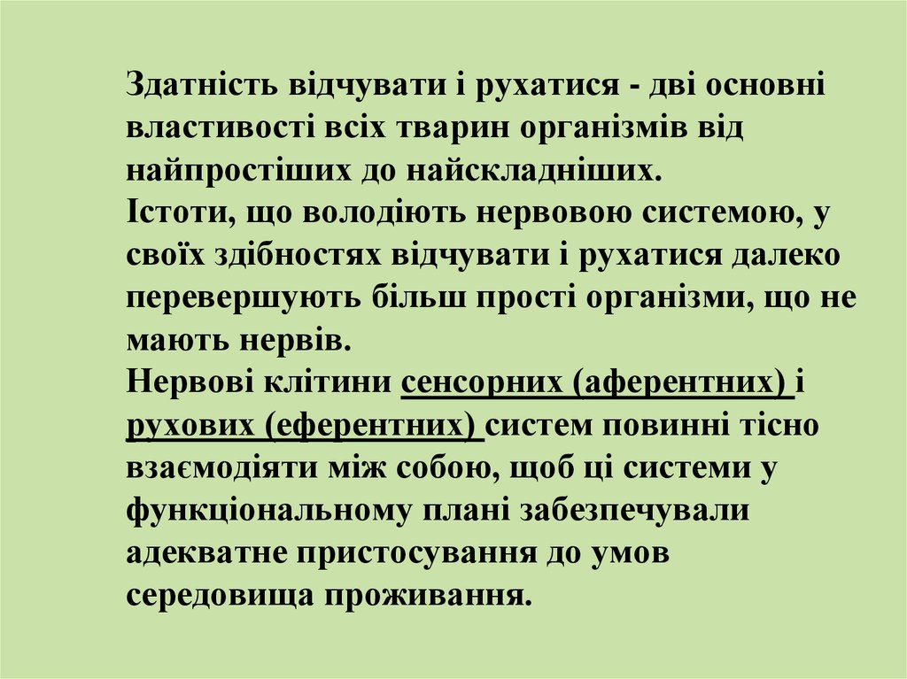 Здатність відчувати і рухатися - дві основнівластивості всіх тварин організмів від
