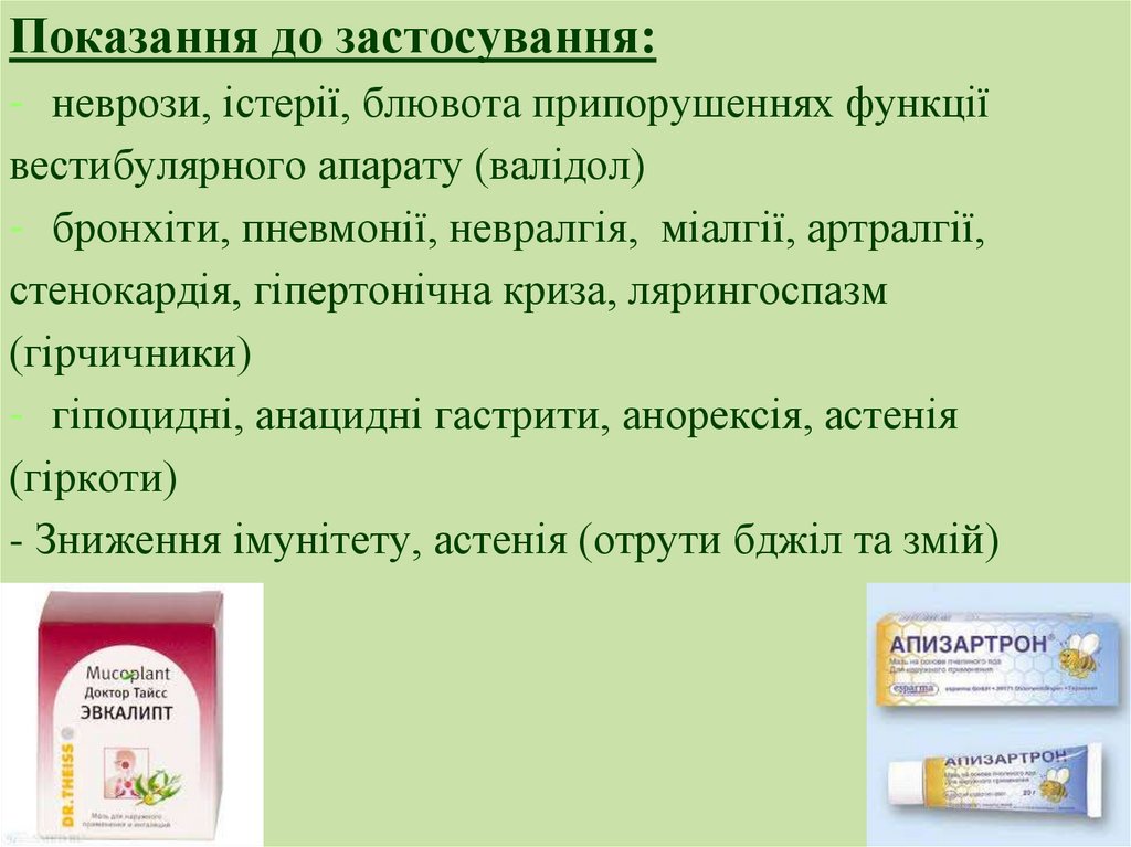 покази до застосування: