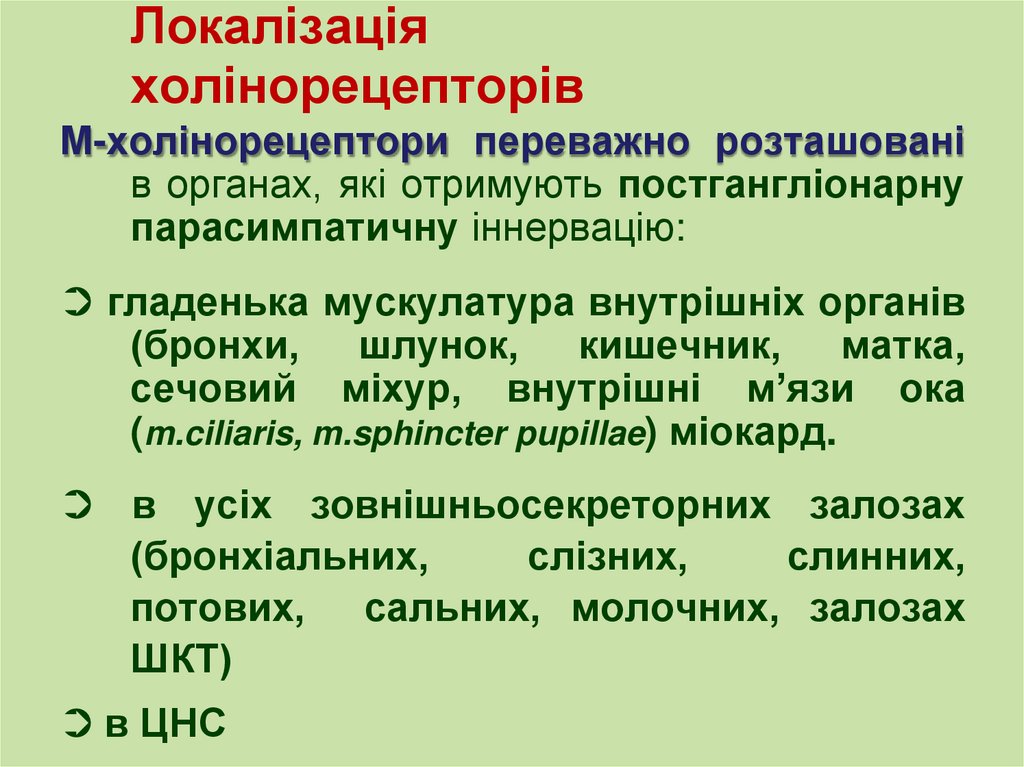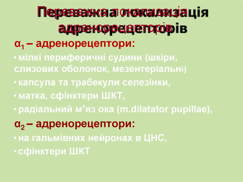 Переважна локализаціяадренорецепторів