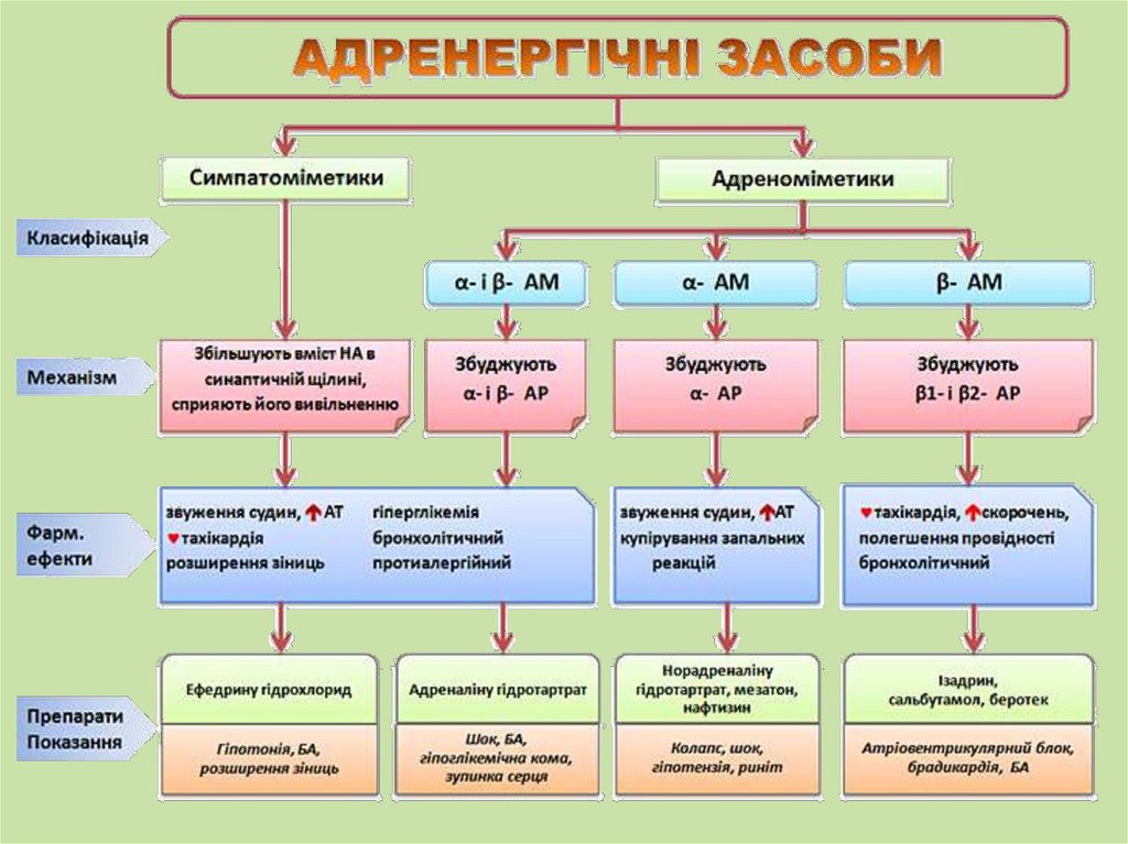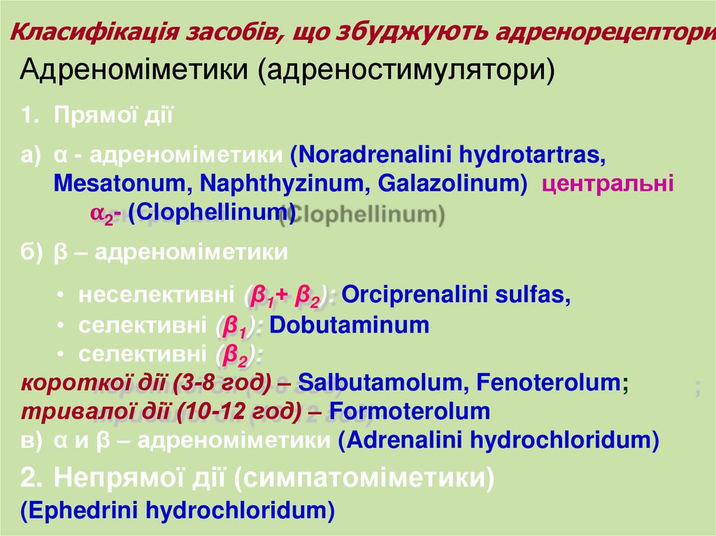 Класифікація засобів, що збуджують адренорецепториАдреноміметики (адреностимулятори)