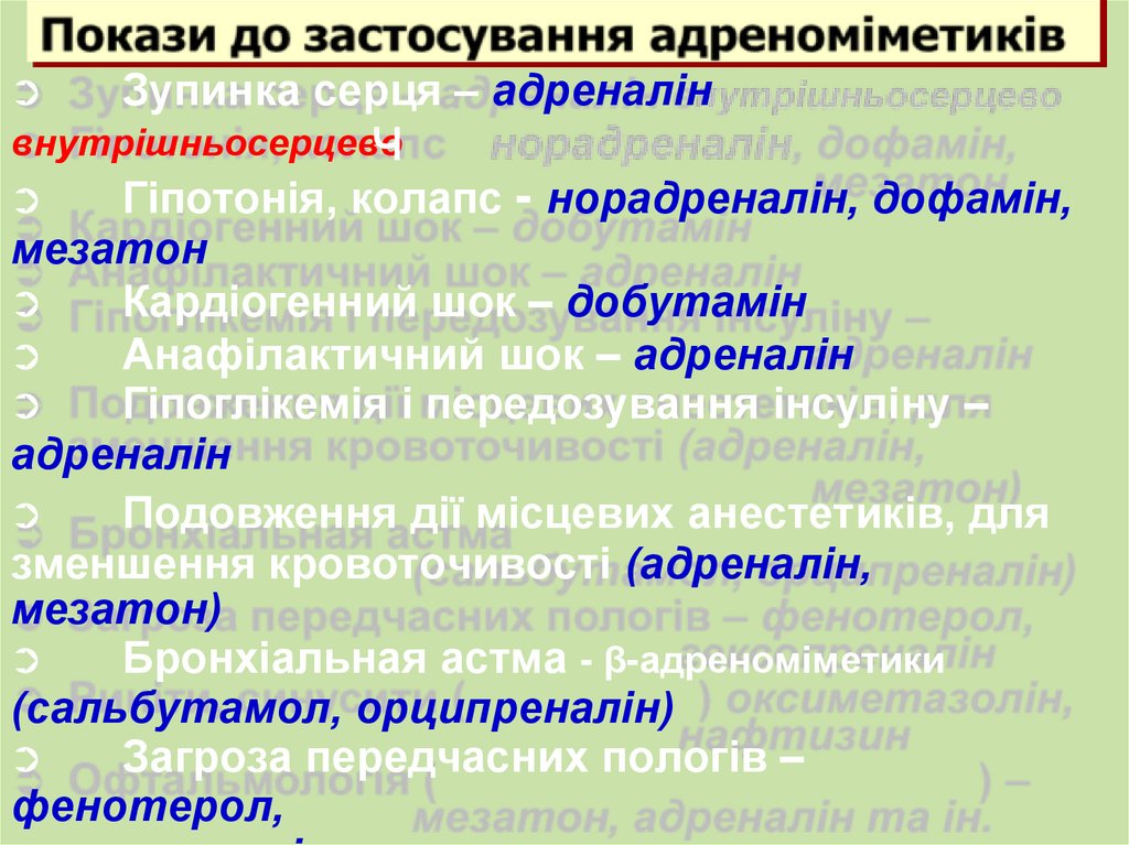 в) α и β – адреноміметики (Adrenalini hydrochloridum)