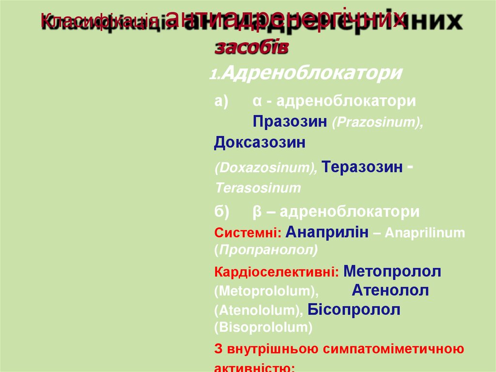 Класифікація антиадренергічнихзасобів