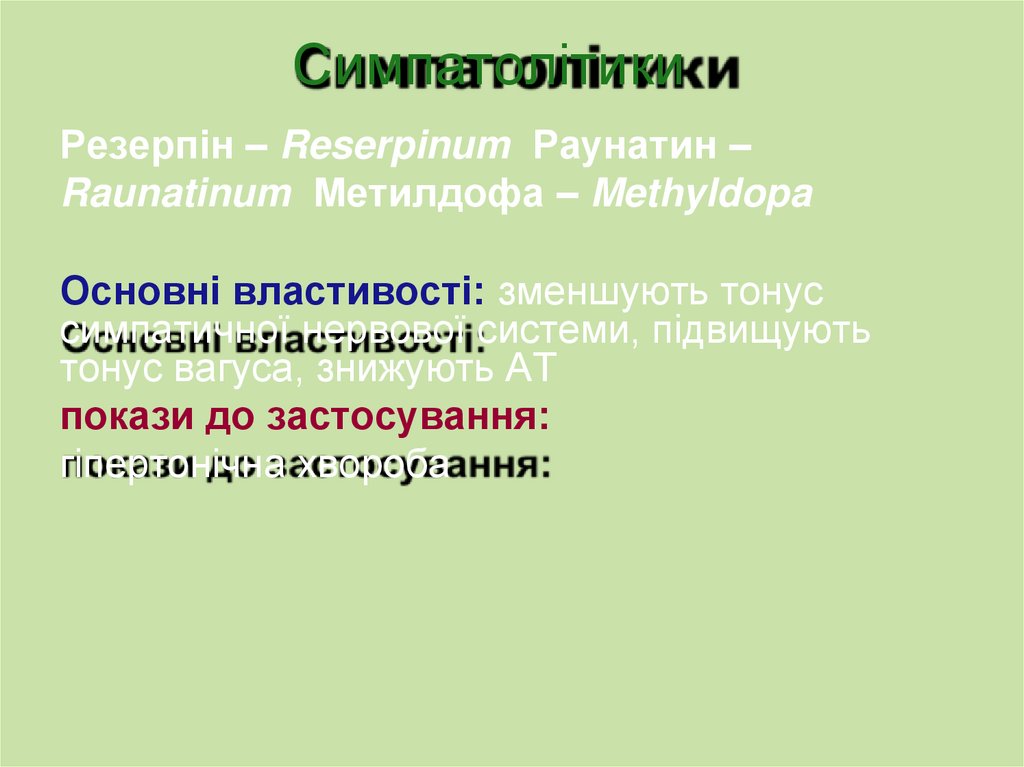 СимпатолітикиРезерпін – Reserpinum Раунатин –