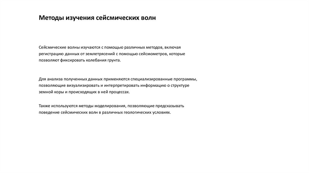 Методы изучения сейсмических волнСейсмические волны изучаются с помощью различных методов, включая