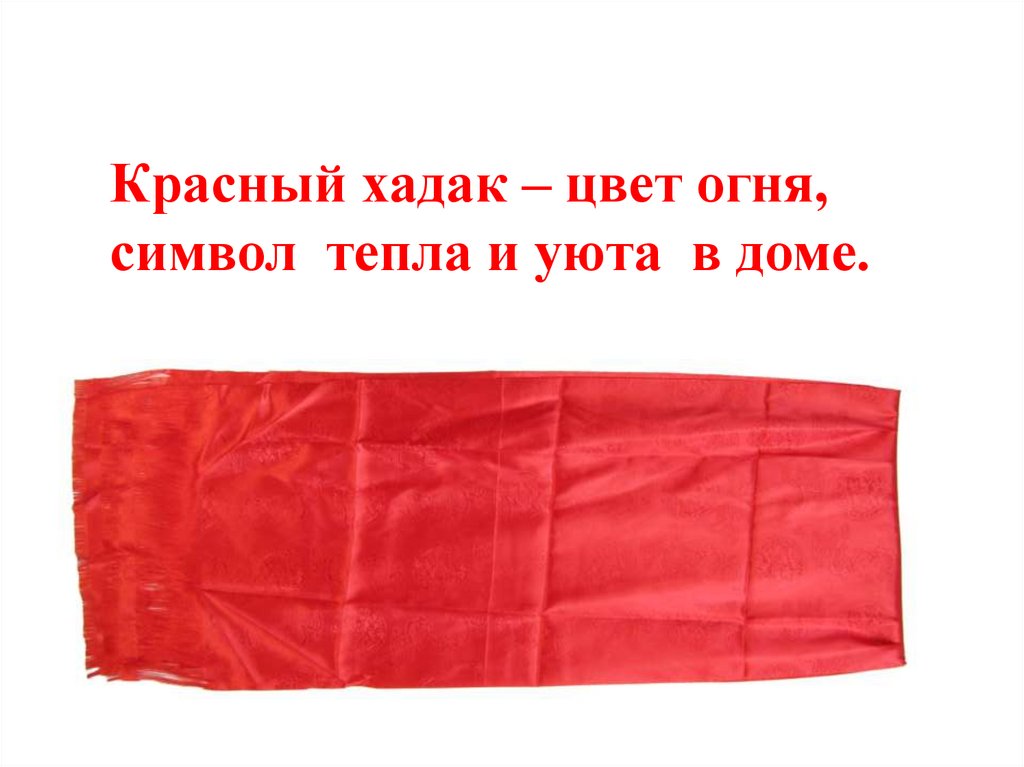 Красный хадак – цвет огня,символ тепла и уюта в доме.