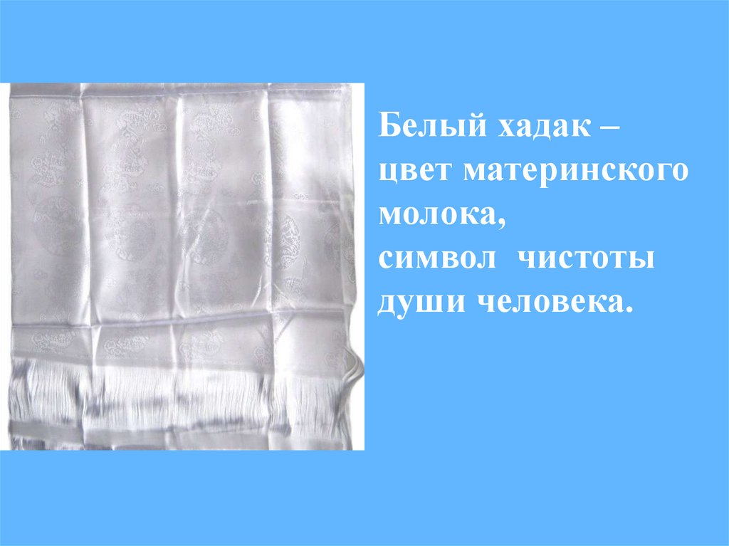 Синий хадак – цвет синего неба,символ согласия, мира и дружбы