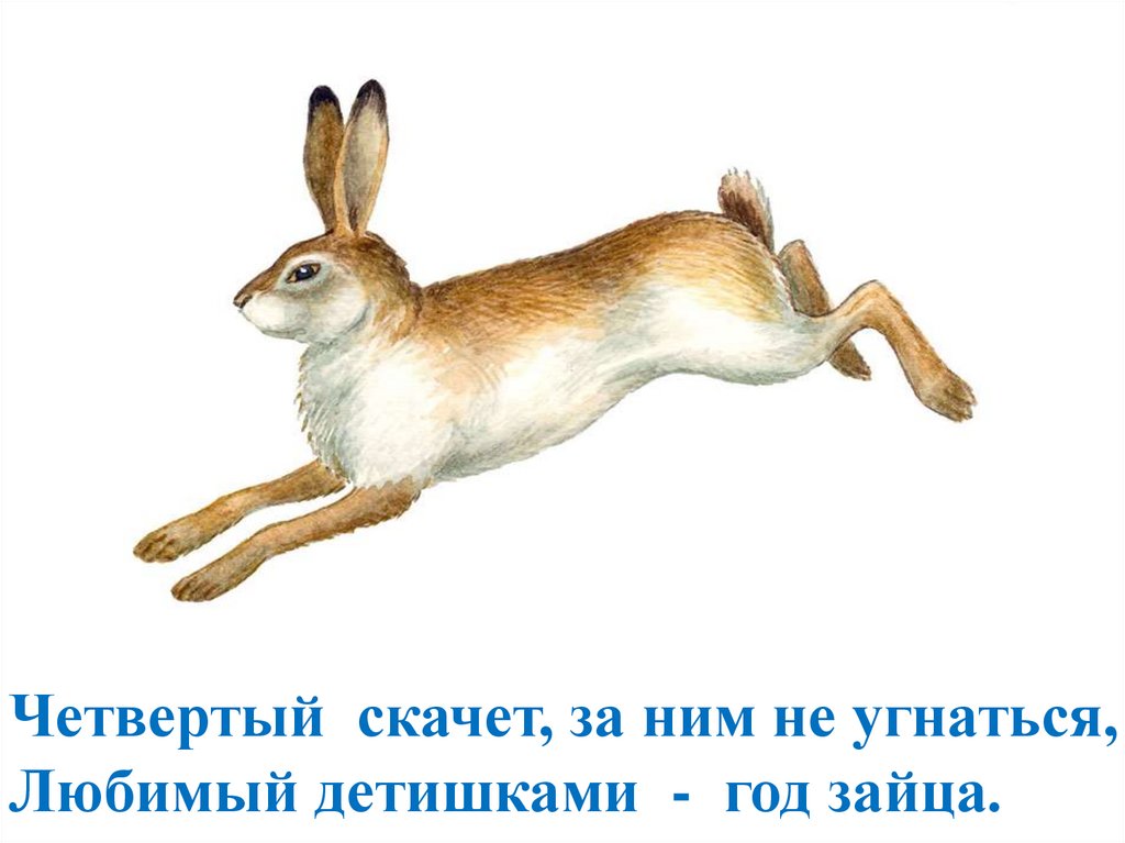 Четвертый скачет, за ним не угнаться,Любимый детишками - год зайца.