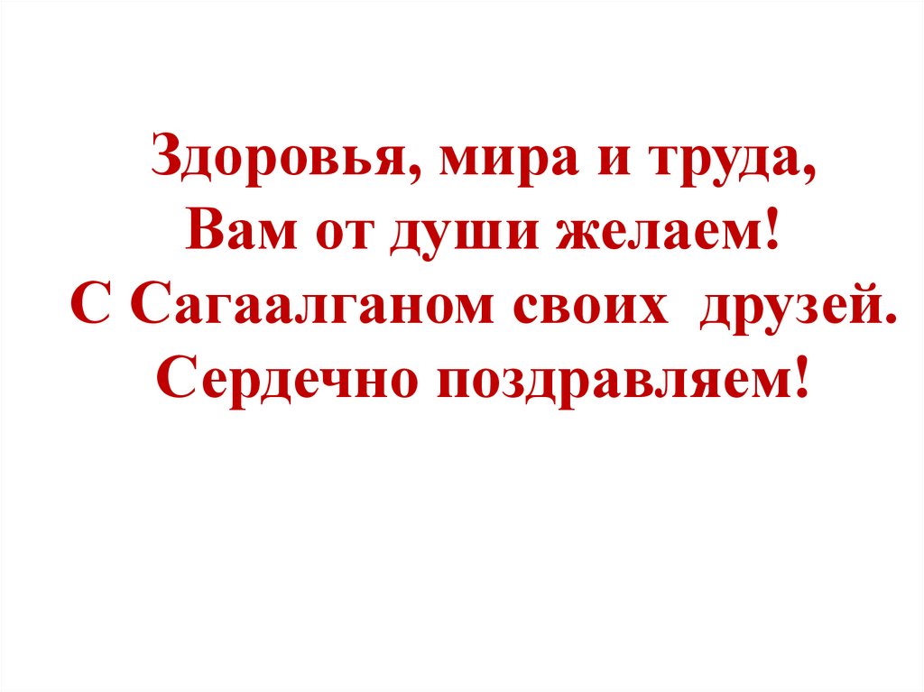 Здоровья, мира и труда,Вам от души желаем!