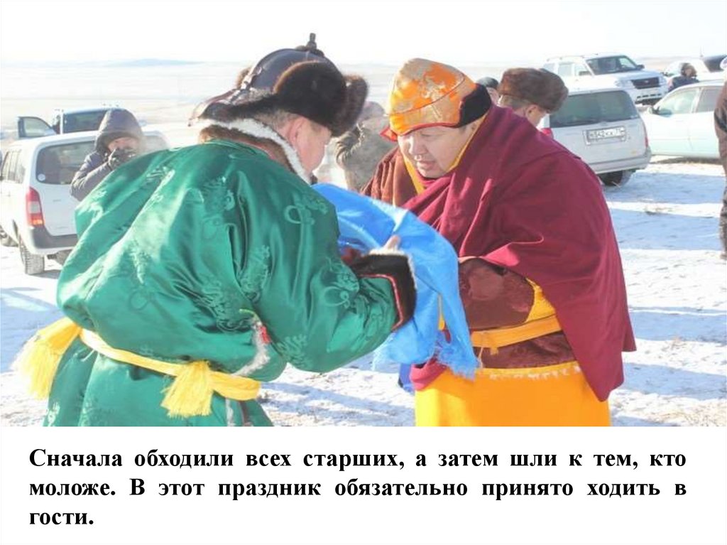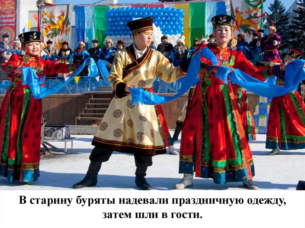 В старину буряты надевали праздничную одежду,затем шли в гости.
