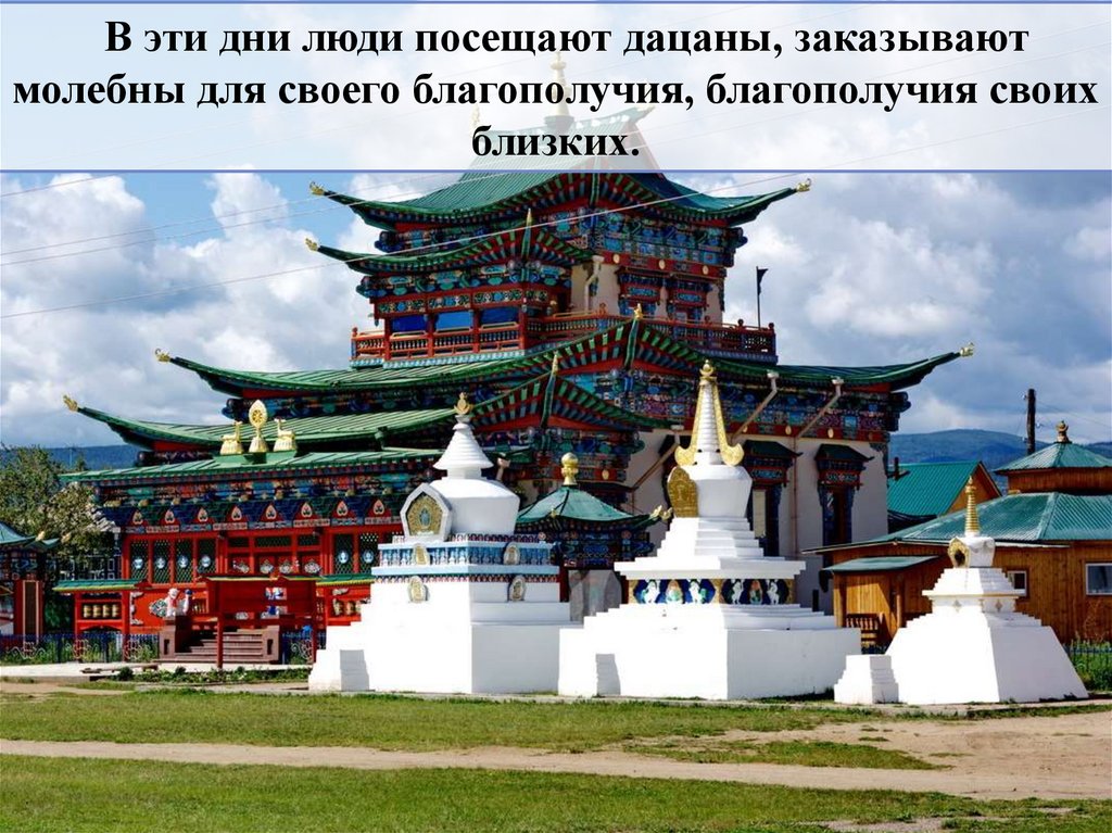 В эти дни люди посещают дацаны, заказываютмолебны для своего благополучия, благополучия своих