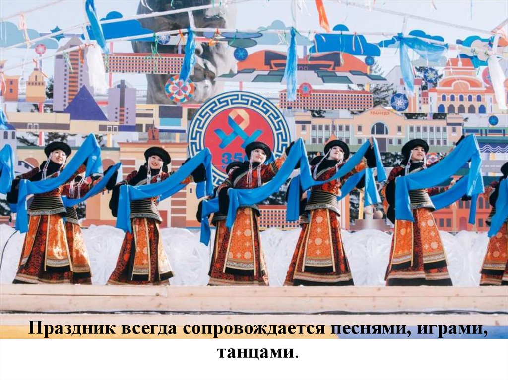 Праздник всегда сопровождается песнями, играми,танцами.