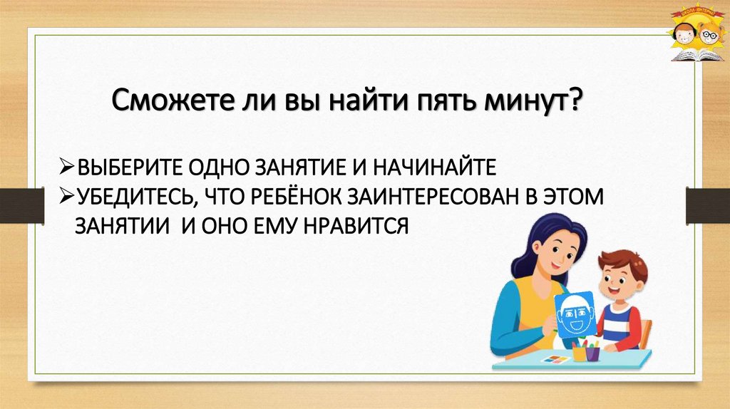 Сможете ли вы найти пять минут?ВЫБЕРИТЕ ОДНО ЗАНЯТИЕ И НАЧИНАЙТЕ