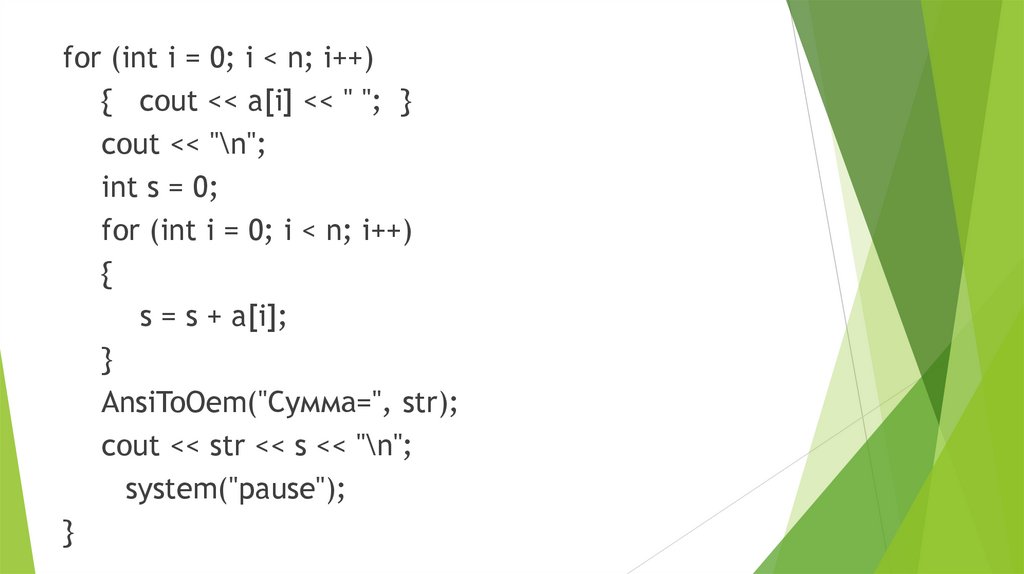 AnsiToOem("Введите размерность массива=", str); cout<<str;