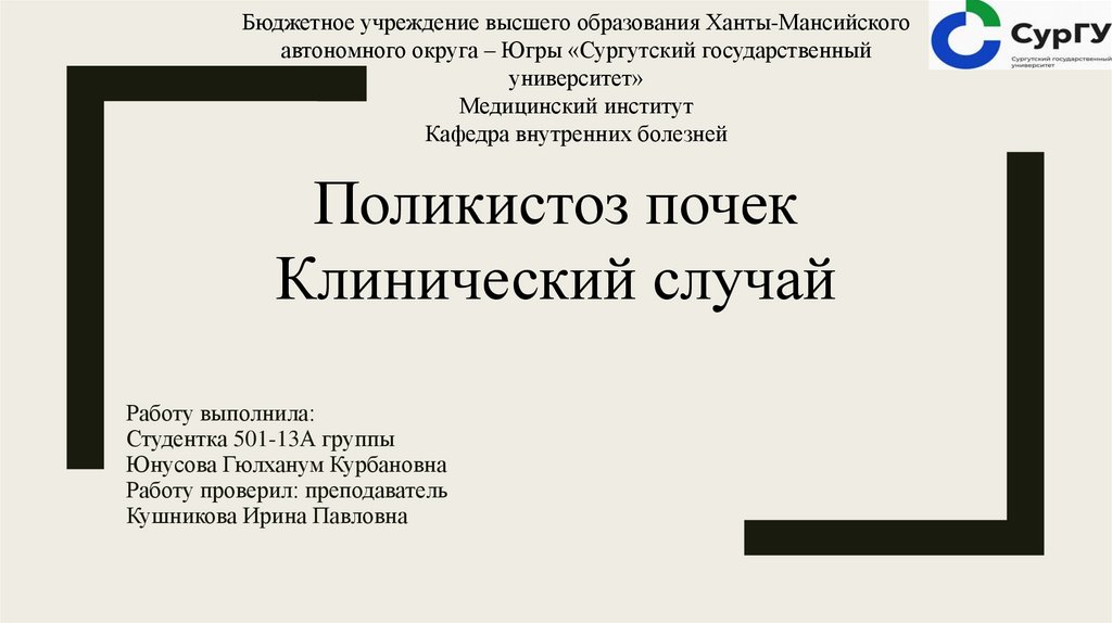 Бюджетное учреждение высшего образования Ханты-Мансийскогоавтономного округа – Югры «Сургутский государственный
