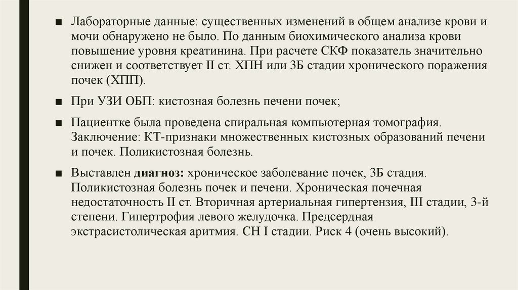 ■ Выставлен диагноз: хроническое заболевание почек, 3Б стадия.