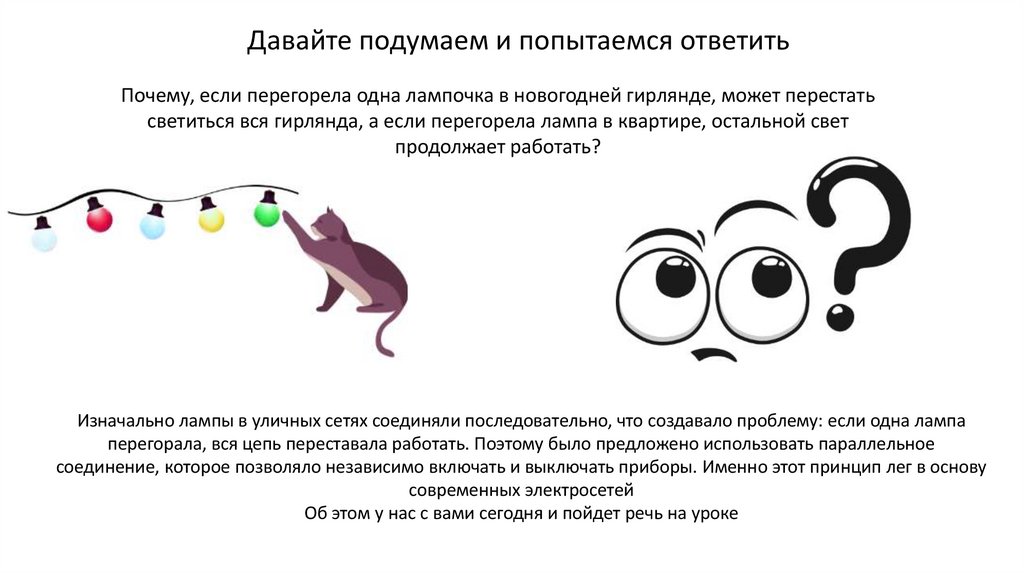 Давайте подумаем и попытаемся ответитьПочему, если перегорела одна лампочка в новогодней гирлянде, может перестать