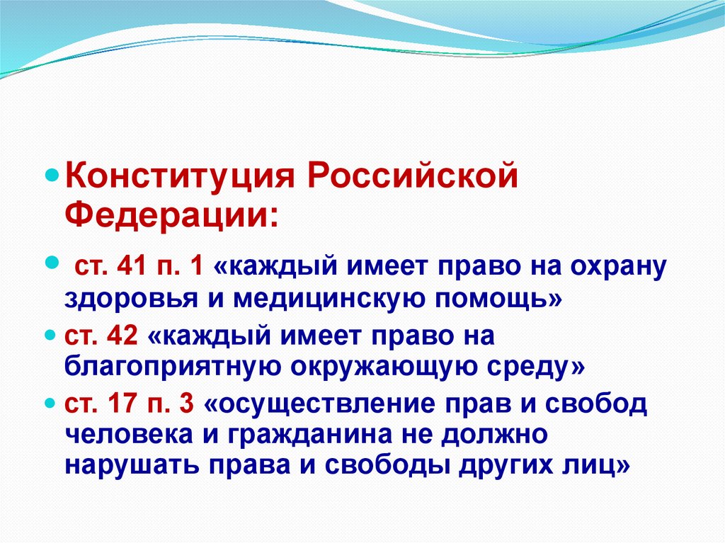 3 ФЗ №52 от 30.07.99г. « О санитарном благополучии населения РФ»,