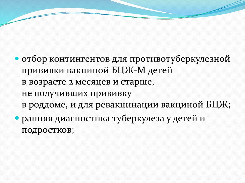 отбор контингентов для противотуберкулезнойпрививки вакциной БЦЖ-М детей