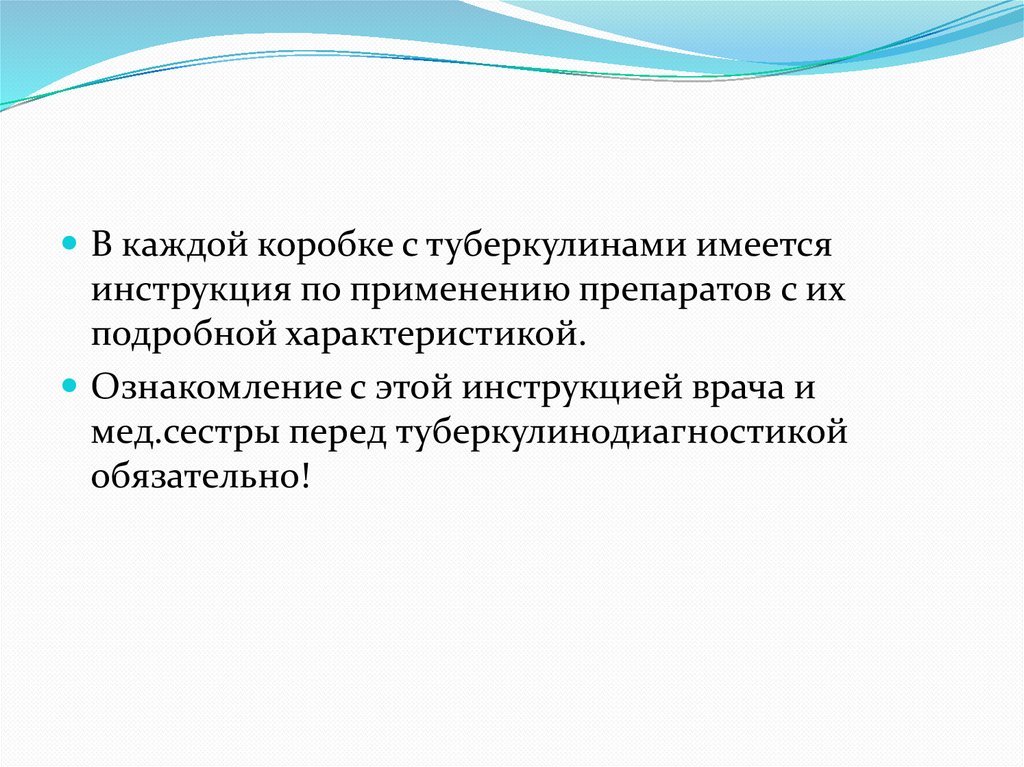 В каждой коробке с туберкулинами имеетсяинструкция по применению препаратов с их