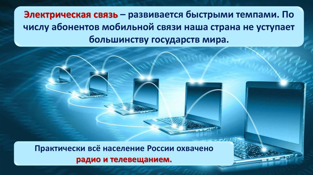 Электрическая связь – развивается быстрыми темпами. Почислу абонентов мобильной связи наша страна не уступает