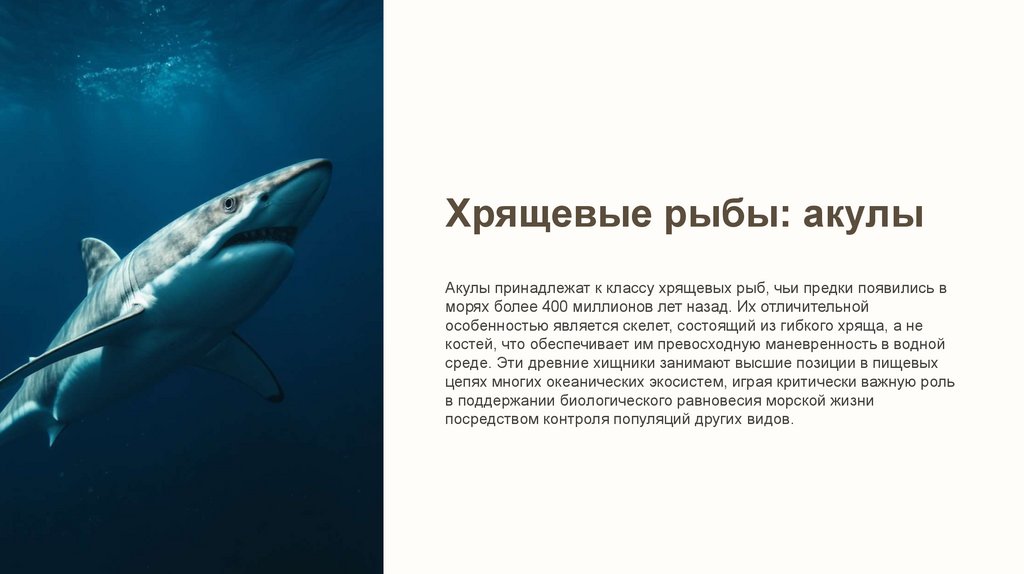 Акулы — хрящевые рыбы, появившиеся более 400 млн лет назад.