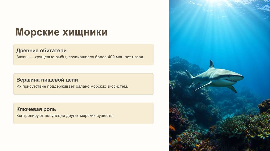 среде. Эти древние хищники занимают высшие позиции в пищевых