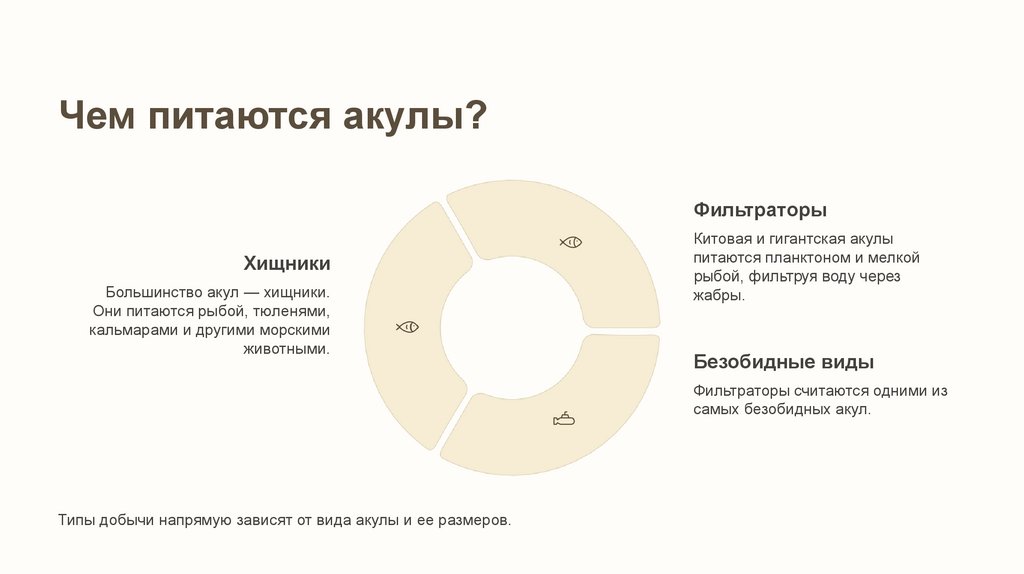 Типы добычи напрямую зависят от вида акулы и ее размеров.