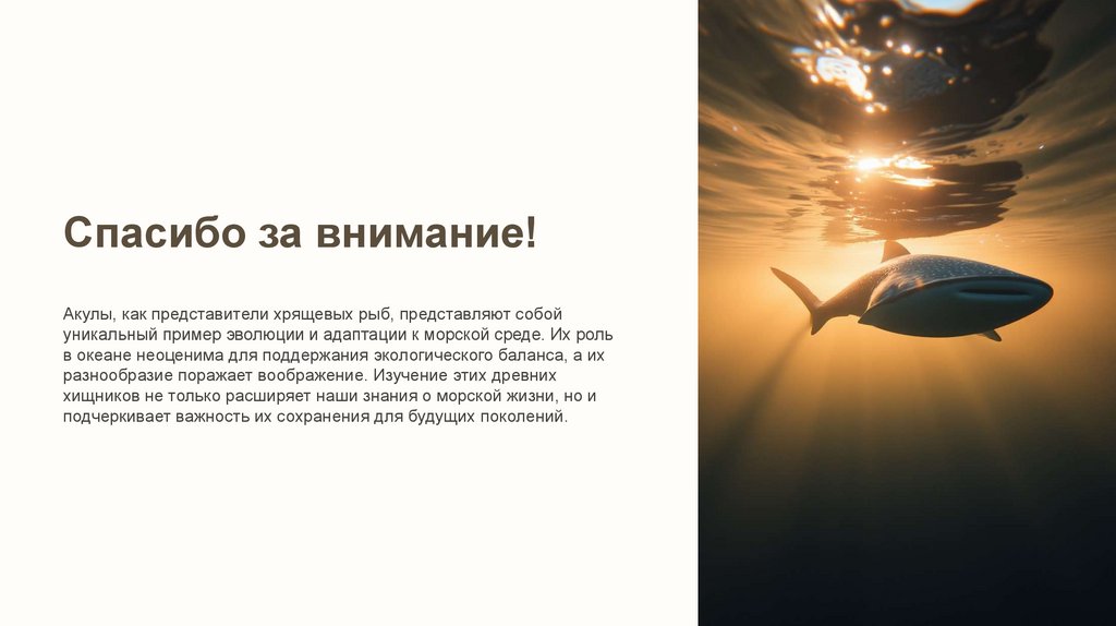 Спасибо за внимание!Акулы, как представители хрящевых рыб, представляют собой