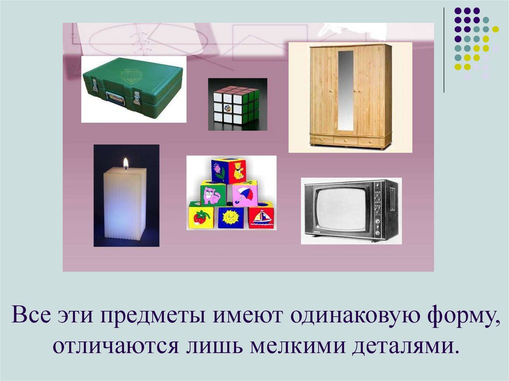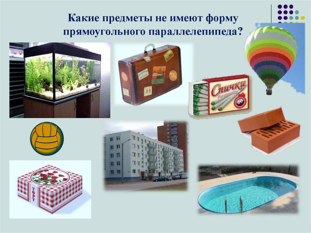Какие предметы не имеют формупрямоугольного параллелепипеда?