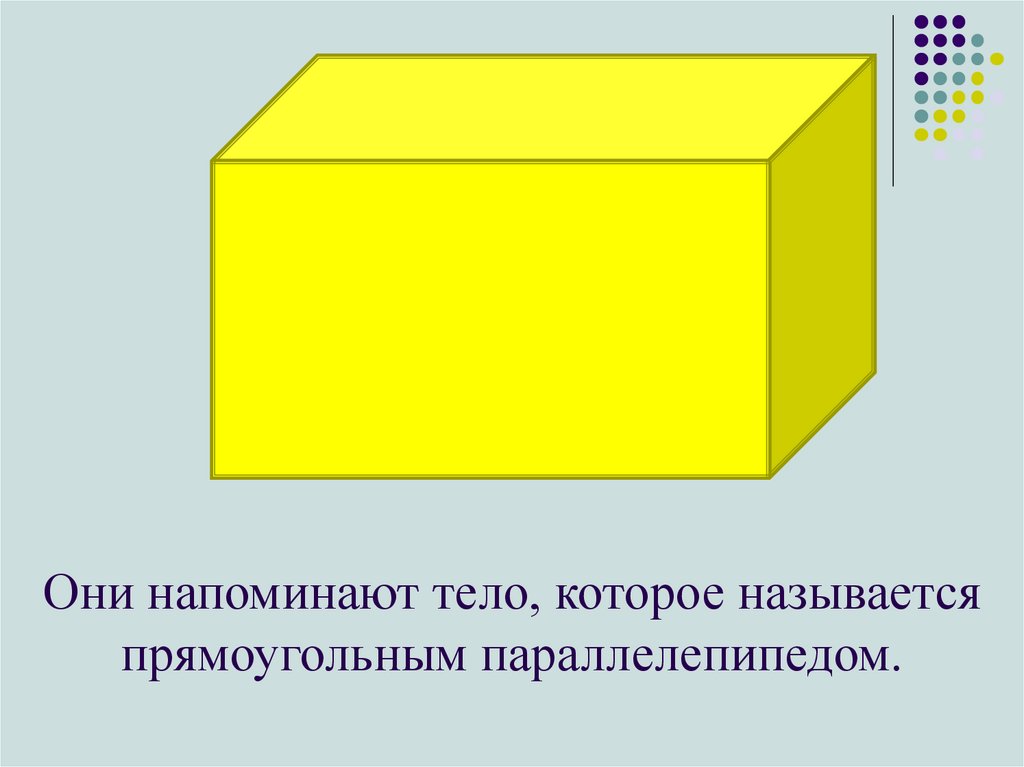 Они напоминают тело, которое называетсяпрямоугольным параллелепипедом.