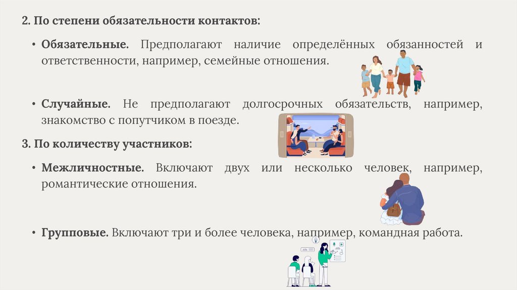 2. По степени обязательности контактов:• Обязательные. Предполагают наличие определённых