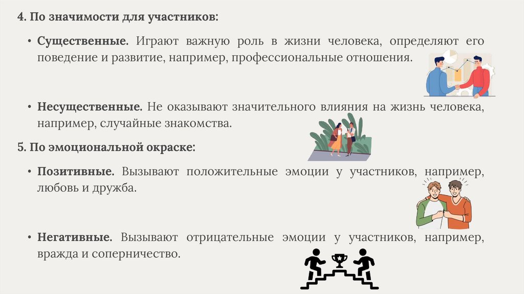 4. По значимости для участников:• Существенные. Играют важную роль в жизни человека, определяют его
