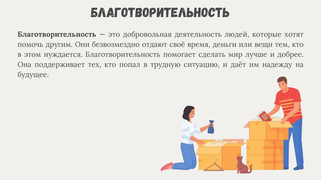 поддержку нуждающихся людей. Это могут быть различные благотворительные