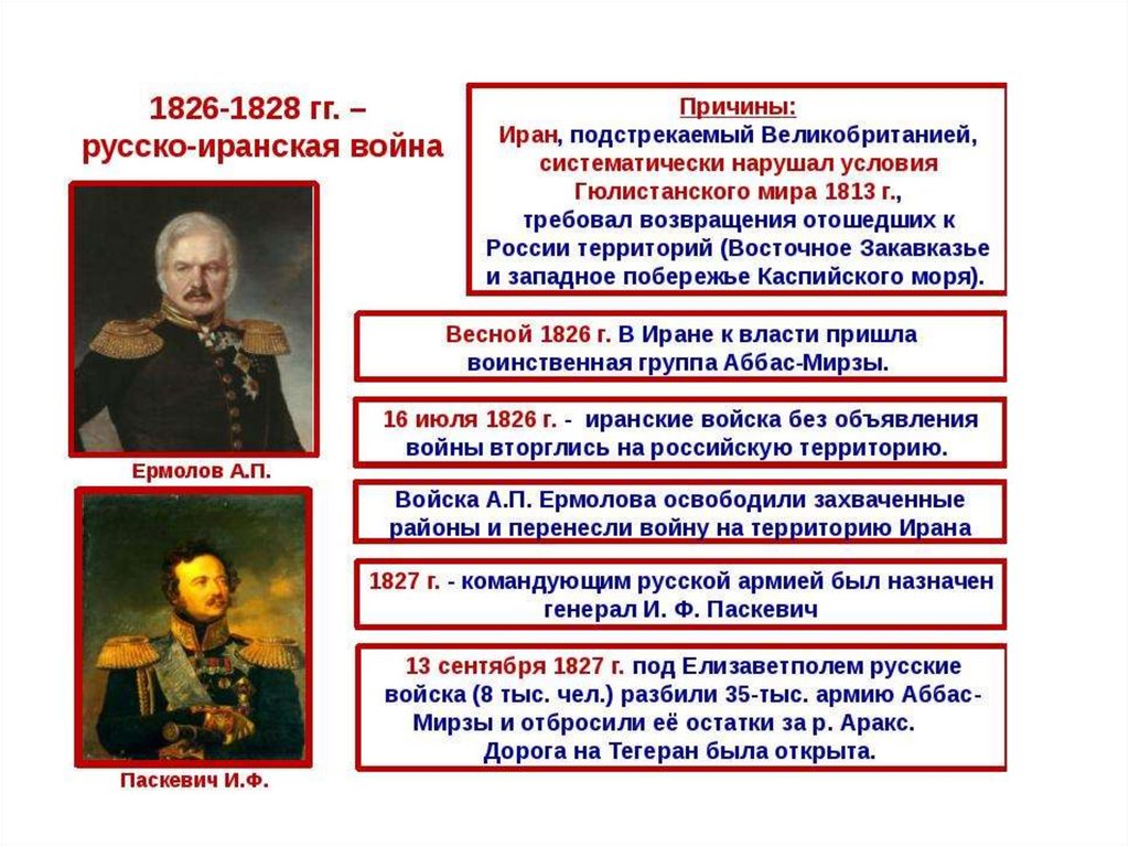 • Русско – иранская война 1826 –