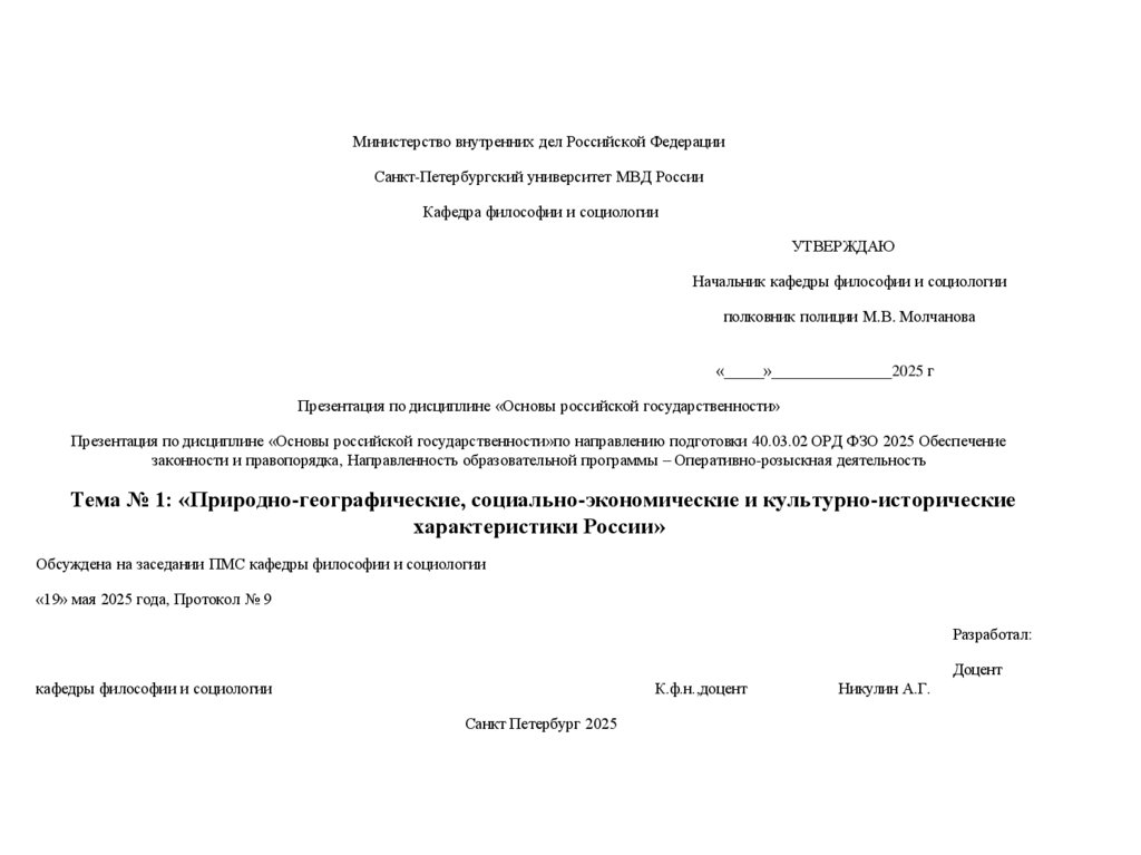 Презентация по дисциплине «Основы российской государственности»по направлению подготовки 40.03.02 ОРД ФЗО 2025 Обеспечение