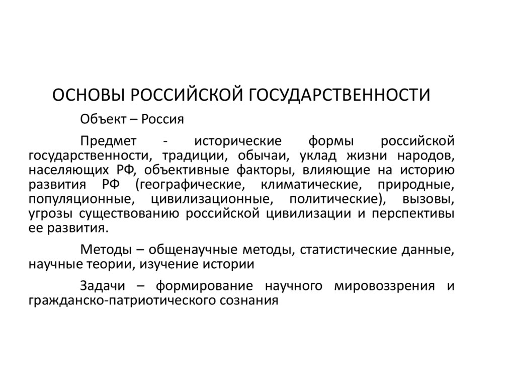 ОСНОВЫ РОССИЙСКОЙ ГОСУДАРСТВЕННОСТИОбъект – Россия